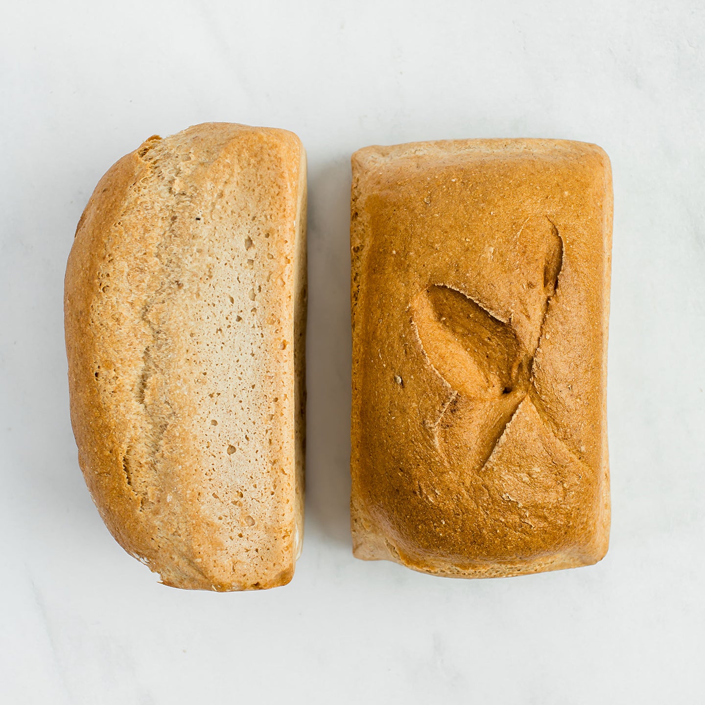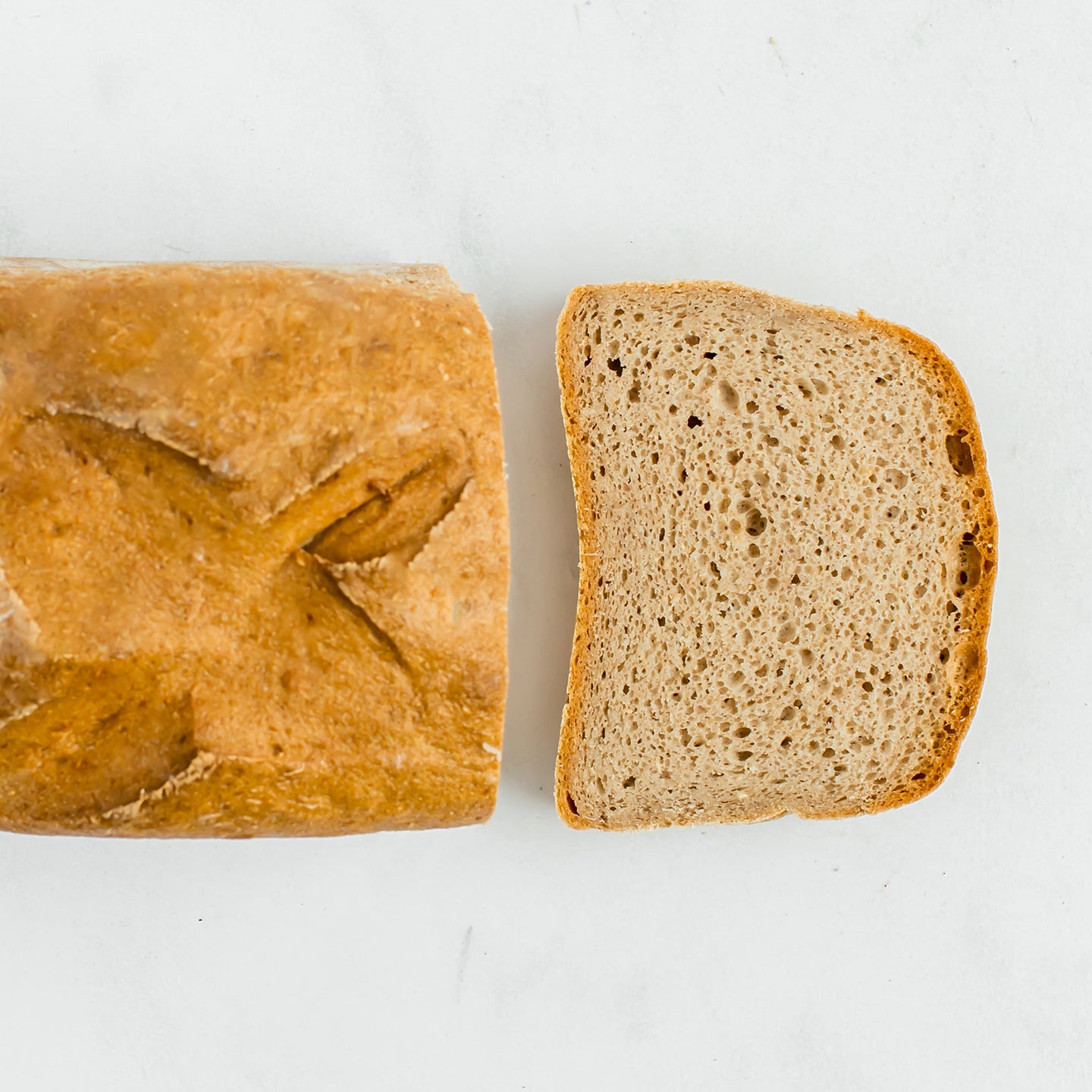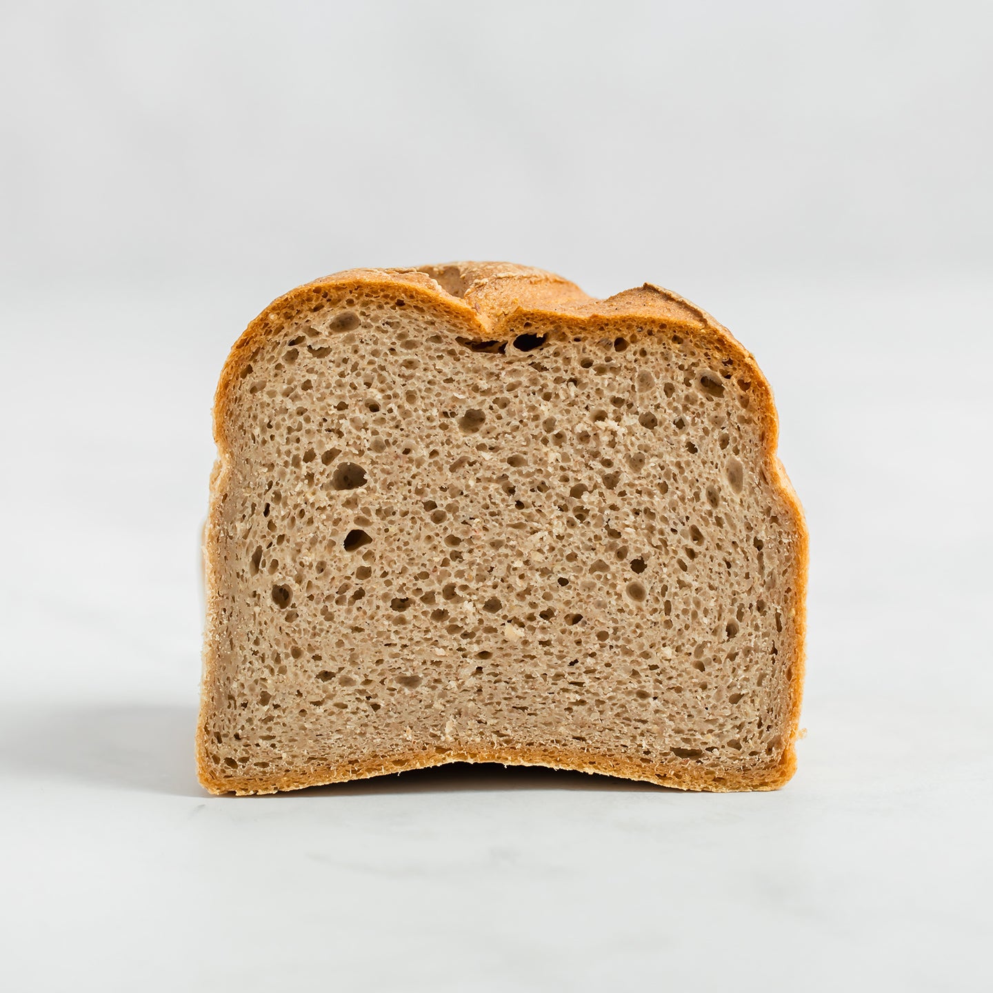 Pain levé au sarrasin complet, naturellement sans gluten, au goût rustique et délicatement noisetté. Sa mie souple et aérée révèle des notes légèrement toastées pour un pain artisanal plein de caractère.